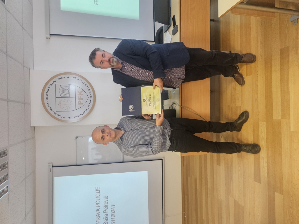 Dana 08.04.2026 godine u organizaciji Pravnog fakulteta Univerziteta u Travniku održano je gostujuće predavanje na temu „Kompjuterski kriminal, digitalni dokazi, slučajevi iz prakse". Gost predavač bio je gosp. Saša Petrović, vještak kriminalističke struke, smjer Digitalna forenzika, načelnik Odjeljenja za borbu protiv kompjuterskog kriminala FUP, FBI NA Graduated.